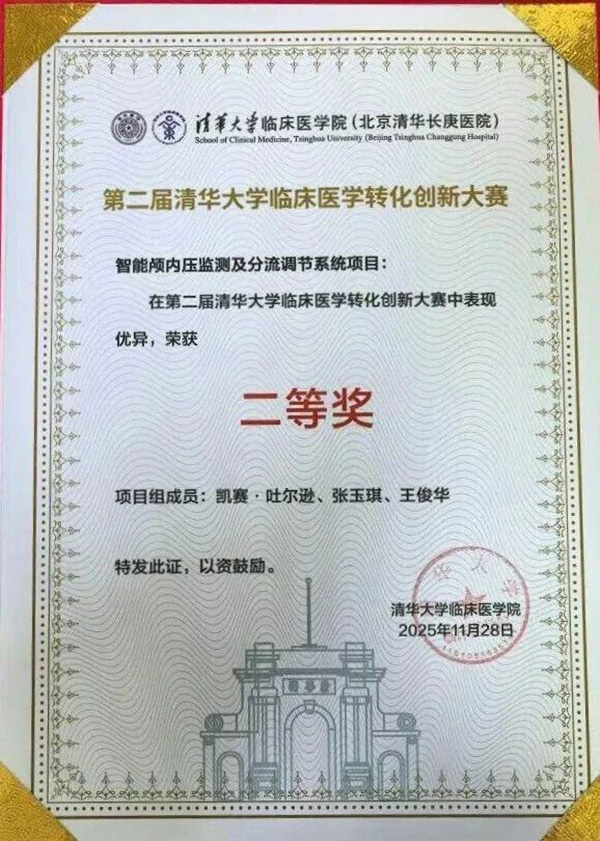 科研动态丨我院脑肿瘤科团队自主研发“智能颅内压监测及分流调节系统”荣获第二届清华大学转化创新大赛二等奖