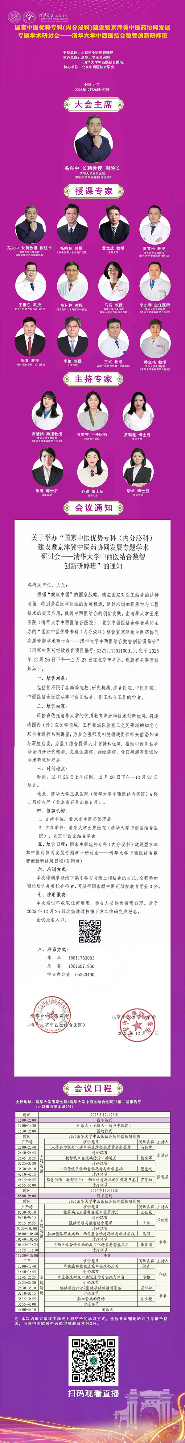 预告丨国家中医优势专科(内分泌科)建设暨京津冀中医药协同发展专题学术研讨会——清华大学中西医结合数智创新研修班
