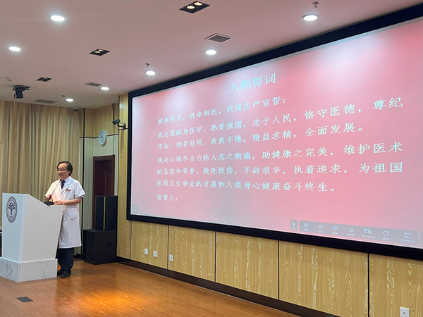 最后,副院长冯兴中介绍了医院的发展历程和医、教、研未来发展方向和人才培养计划,鼓励新员工积极投身到医院高质量发展的进程中,努力在各自的岗位上奉献青春、热情和才华。
